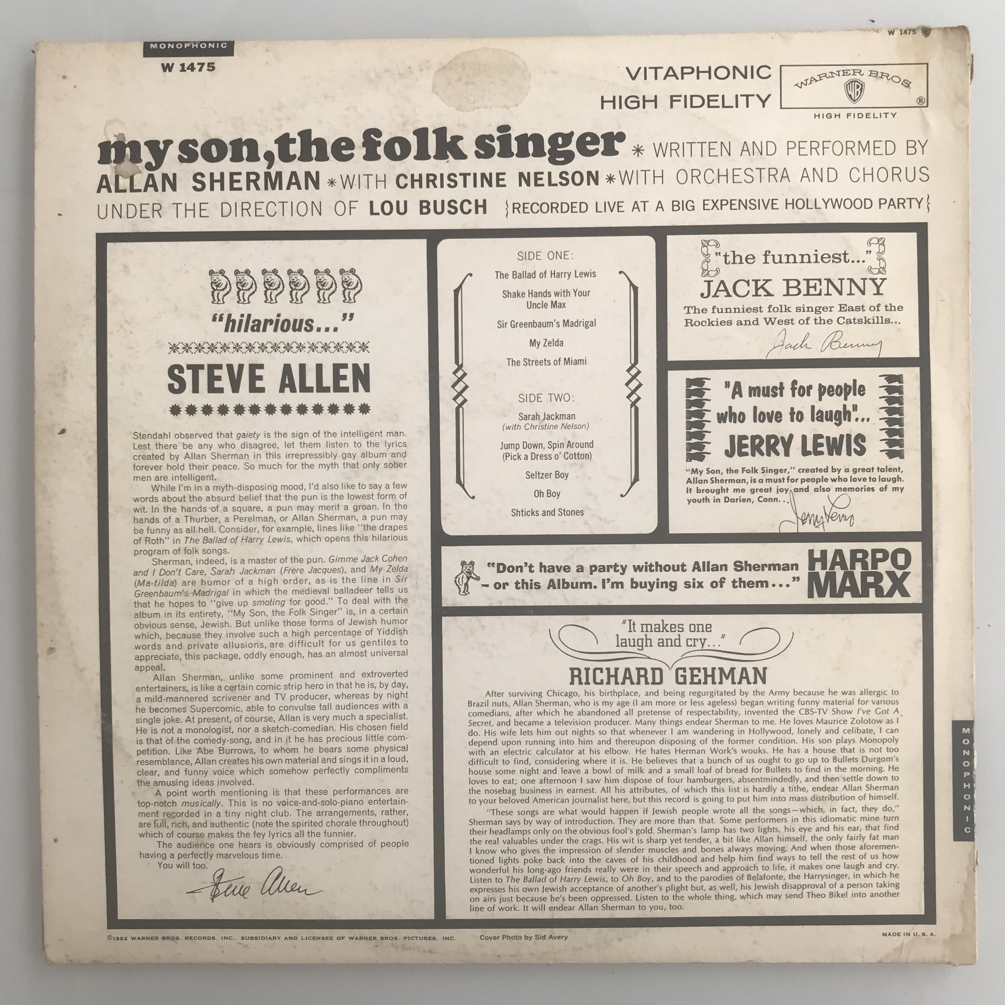 Allan Sherman - My Son, The Folk Singer - Vinyl LP (USED)
