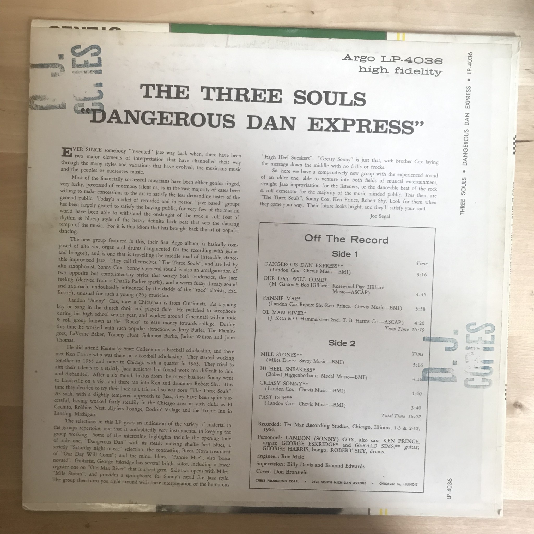 Three Souls - Dangerous Dan Express - LP 4036 - Vinyl LP (USED)