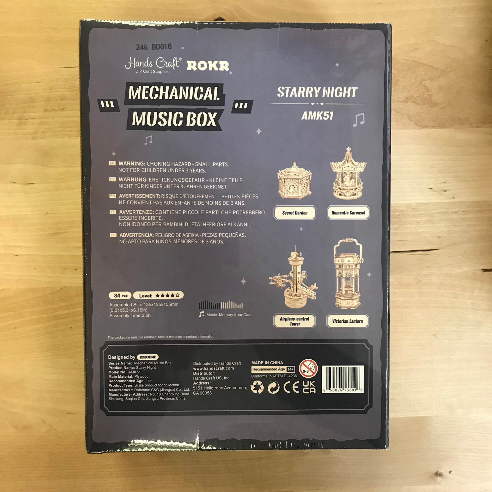 Starry Night is a DIY replica of a vintage Orrery mechanical model of the solar system, illustrating the planets and moons' relative positions and motions. The planets are made of colorful decorative spheres and circles the sun while the music box plays its tune.