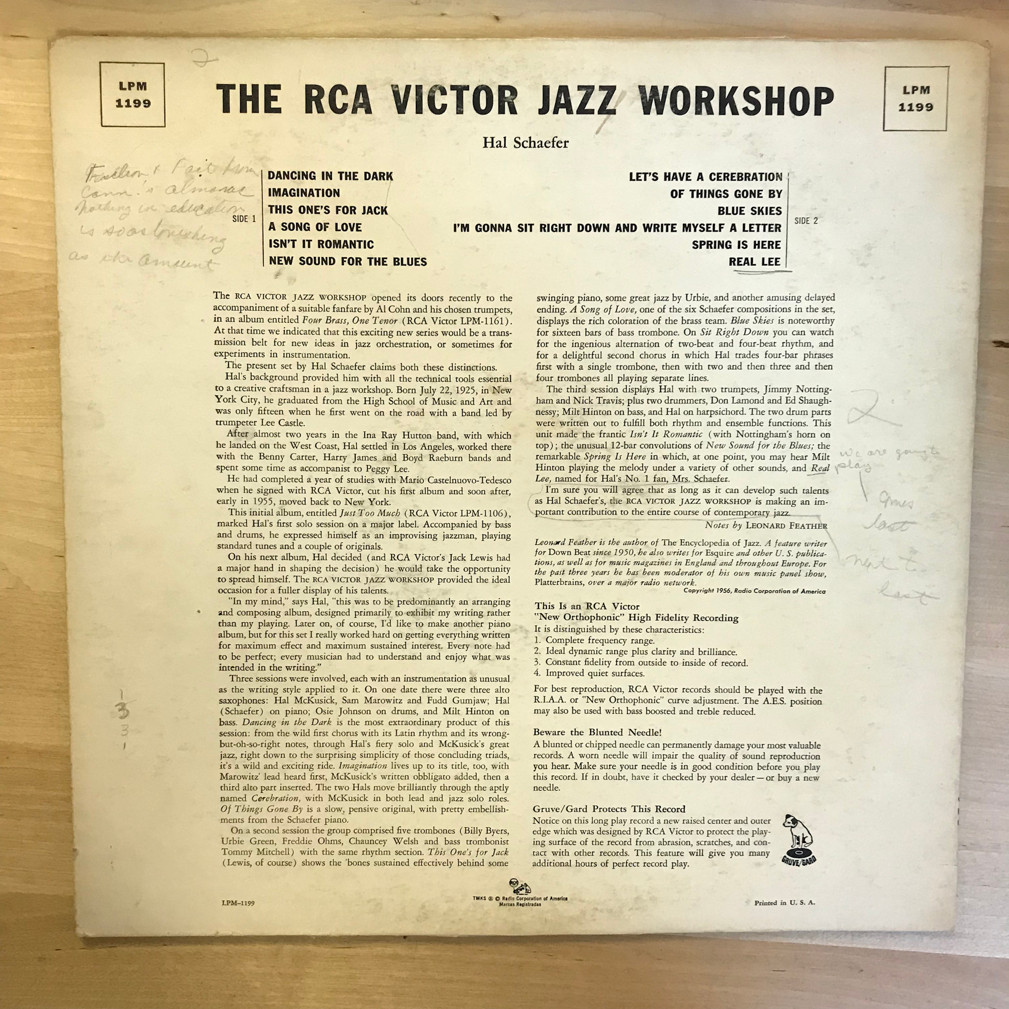 Hal Schaefer - The RCA Victor Jazz Workshop - LPM1199 - Vinyl LP (USED)