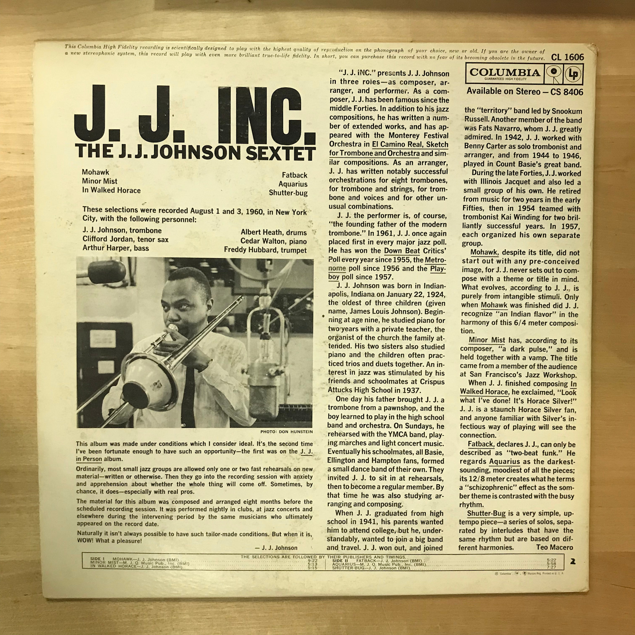 J.J. Johnson - J.J. Inc. - CL1606 - Vinyl LP (USED)