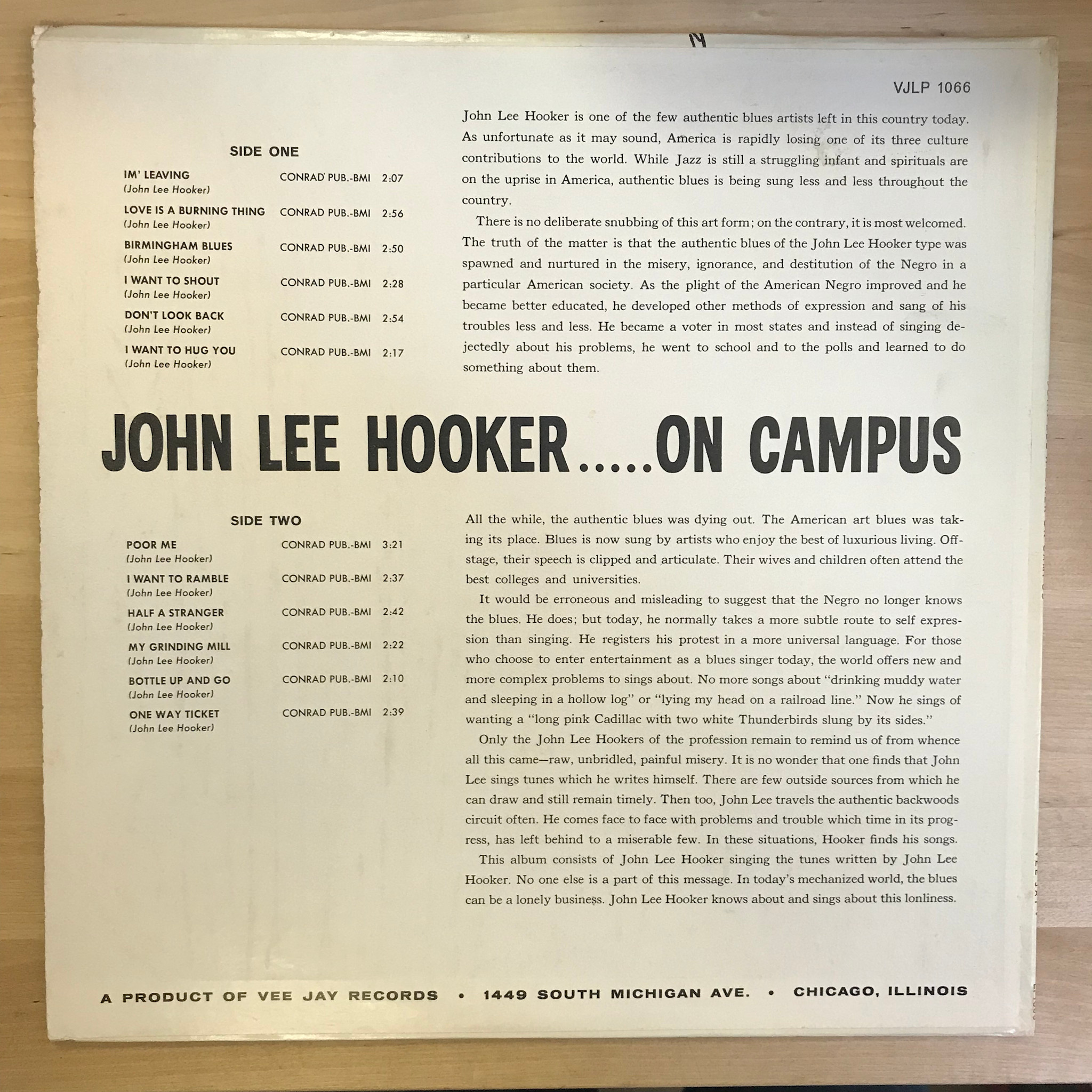 John Lee Hooker - On Campus - VJLP1066 - Vinyl LP (USED)