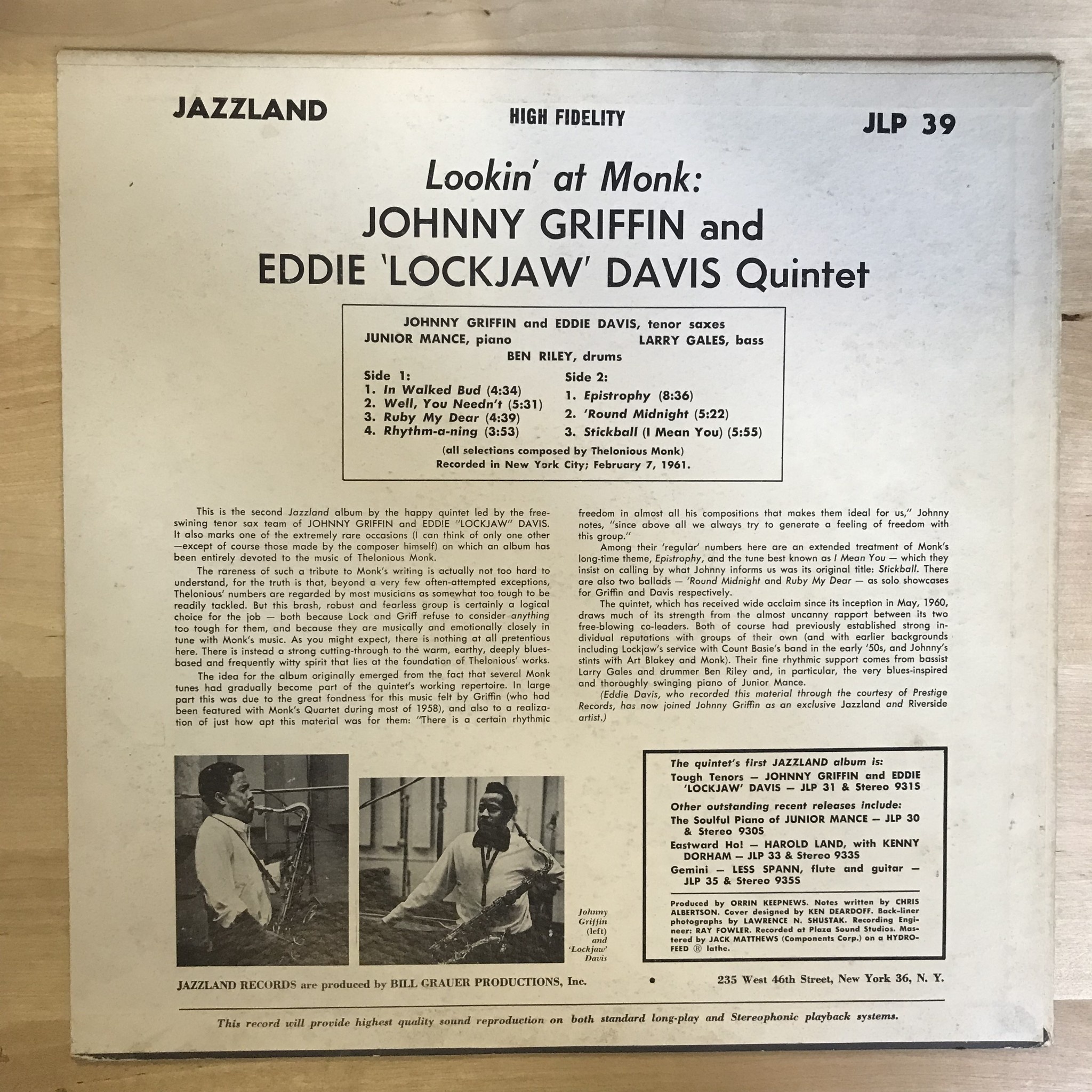 Johnny Griffin, Eddie “Lockjaw” Davis - Lookin’ At Monk! - JLP39 - Vinyl LP (USED)