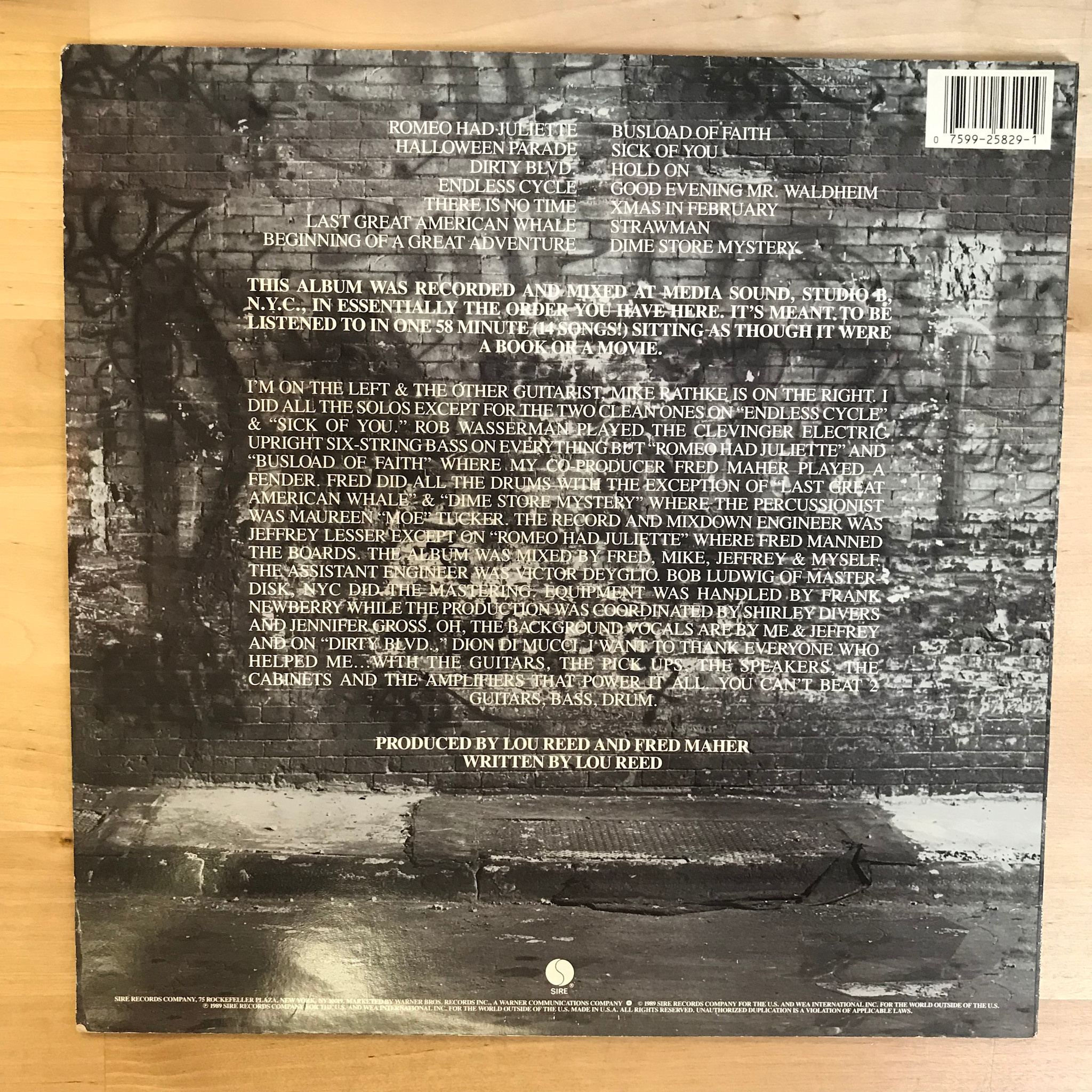 Lou Reed - New York - 25829 1 - Vinyl LP (USED)