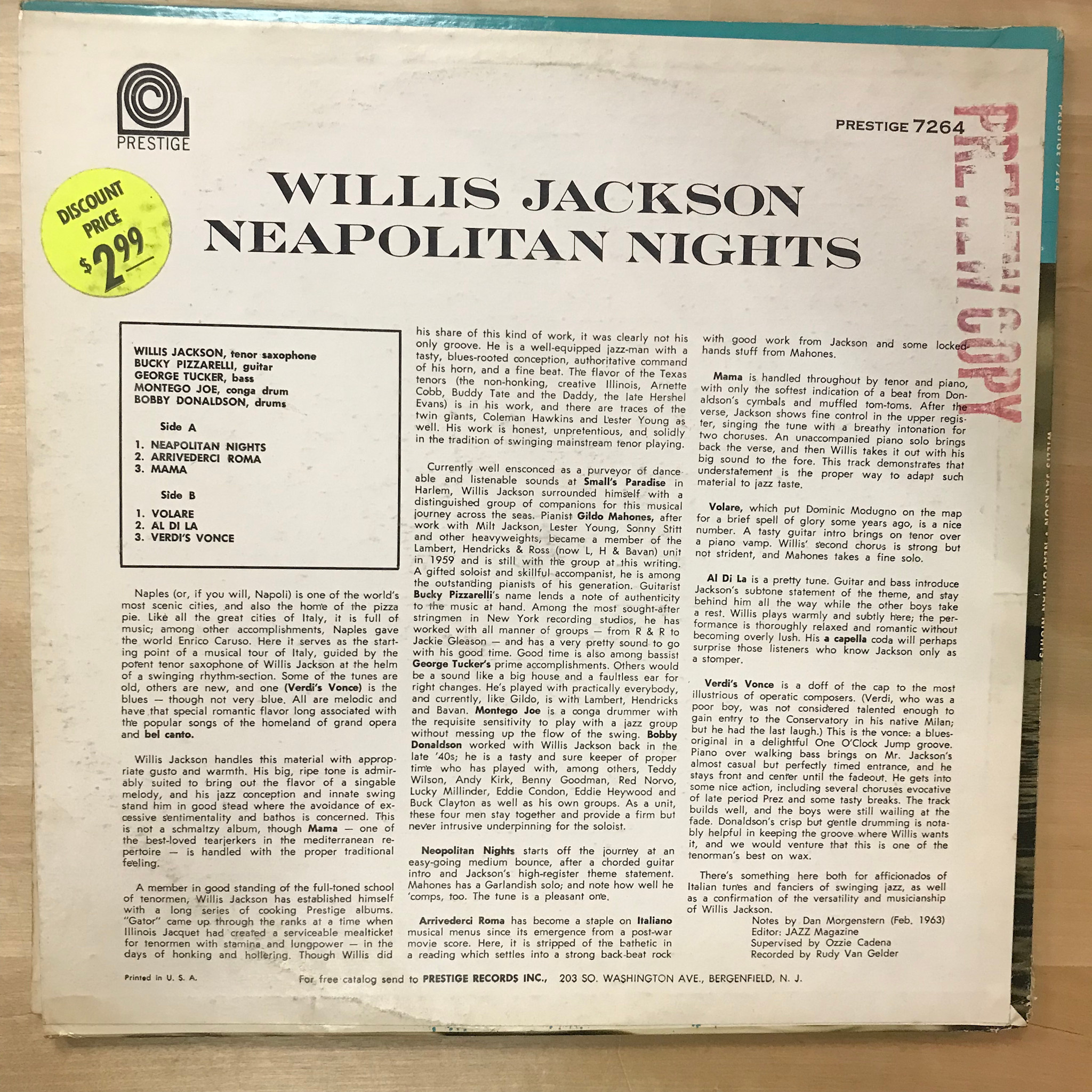 Willis Jackson - Neapolitan Nights - PRLP 7264 - Vinyl LP (USED)